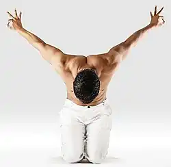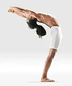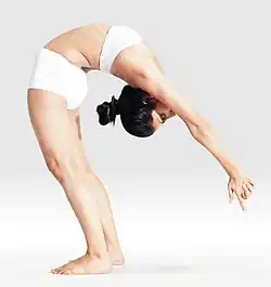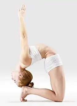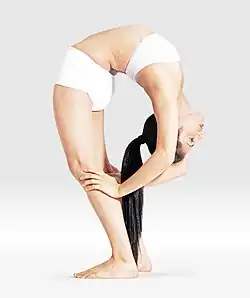 | Sthiti Urdhva Mukhottana Kulpha Dhanurasana | Stojící napětí úklonu | stojící (Uttihista Sthiti) | ||