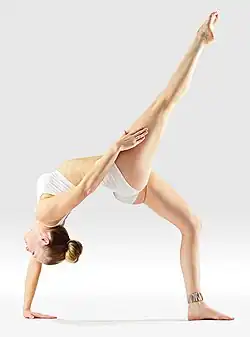 | Eka Pāda Viparīta Daṇḍāsana | एकपादविपरीतदण्डासन | Jednonohá obrácená berle | záklon (Purva Pratana Sthiti) |