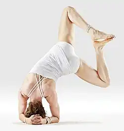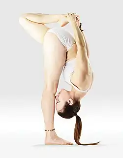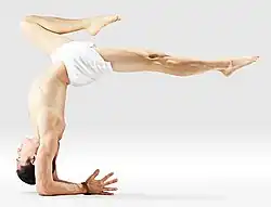 | Dvi Pāda Viparīta Daṇḍāsana | द्विपदविपरीतदण्डासन | Otočená tyč | záklon (Purva Pratana Sthiti) |