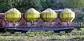 | Zaces | 67 | 786 4 [P] / 787 6 | KOS Krnov / MEVA Severin (Rumunsko) | 2000-xx | 4n, 343 hl, ocelový kotel vysokotlaký, vykládaný vrchem, s vytápěním, na kyselinu sírovou dýmavou (oleum) (rekonstrukce vozů Zacs 786 4, sk. 67 dosazením topných hadů). Provozní vozy byly po roce 2010 přeznačeny do intervalu 787 6 | ![]() |