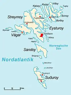 | Streymoy | 373,5 | — | 789 | Kopsenni | 21 900 | 58,6 | Tórshavn | Streymoy | — | Faerské ostrovy | 62°8′ s. š., 7° z. d. |