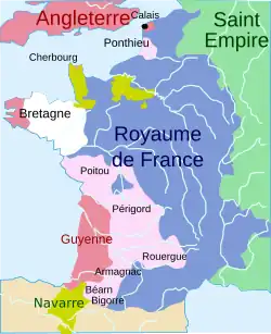 Roku 1453 zůstalo z francouzských panství Anglii pouze Calais, v kapetovském rodě se příležitostně uděloval titul vévodů z Guyenne, jako apanáž princů, s historickou Akvitánií to však nesouviselo.