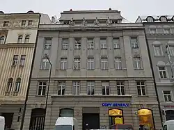 1867,[16] 1923–1925[29][16] | novoklasicismus a rondokubismus[29] | František Havel (původní nájemní dům),[16] Rudolf Jonáš (plány přestavby ve 20. letech 20. století)[16][24][29] | Původně nájemní dům,[16] Ústřední svaz českých nemocenských pokladen, Českomoravská hypoteční banka,[16] zdravotnické zařízení | |