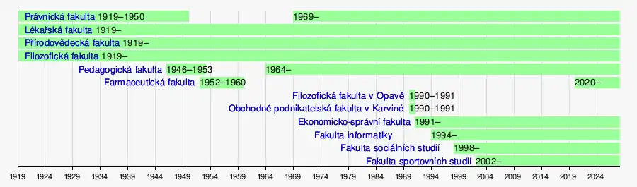 - Pedagogická fakulta (PdF; 1946–dosud, v letech 1953–1964 nebyla součástí univerzity)