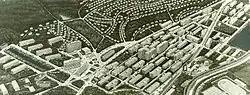 František Lydie Gahura | 1927-1938 | Jižně od Baťovy továrny od roku 1927 vznikalo nové městské centrum na principu otevřeného urbanismu. Parkové náměstí s vrstevnicově řazenými internáty bylo roku 1932 završeno Památníkem Tomáše Bati. V dolní části přechází ve školní areál na východní straně a v náměstí Práce na západní straně. Prostorové vazby obou náměstí k továrně ilustrují Baťovu koncepci „ideálního průmyslového města“, kde továrnu a obytné zóny propojuje obchodní a společenské centrum.[8] | |