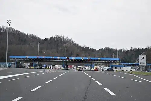 - ↑ a b Je uvedeno pouze číslo dálnice/silnice z chorvatské strany