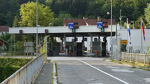 - ↑ a b Název se skládá z názvů sídel po obou stranách hranice, první je uvedeno sídlo v Chorvatsku