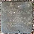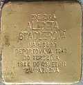 ALŽBĚTA STADLEROVÁ NAR. 1893 DEPORTOVÁNA 1942 DO TEREZÍNA 1944 DO OSVĚTIMI ZAVRAŽDĚNA |