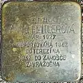 ANNA FEITLEROVÁ NAR. 1927 DEPORTOVÁNA 1942 DO TEREZÍNA 1942 DO ZAMOŠČE ZAVRAŽDĚNA |