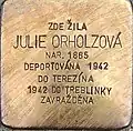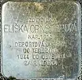ELIŠKA ORNSTEINOVÁ NAR. 1911 DEPORTOVÁNA 1942 DO TEREZÍNA 1944 DO OSVĚTIMI ZAVRAŽDĚNA |