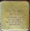 EMIL ZENKER NAR. 1888 DEPORTOVÁN 1942 DO TEREZÍNA 1942 DO RAASIKU ZAVRAŽDĚN |