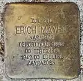 ERICH KENDE NAR. 1920 DEPORTOVÁN 1942 DO TEREZÍNA 1944 DO OSVĚTIMI ZAVRAŽDĚN 3.3.1945 V DACHAU |
