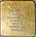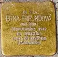 ERNA FREUNDOVÁ NAR. 1898 DEPORTOVÁNA 1942 DO TEREZÍNA 1943 DO OSVĚTIMI ZAVRAŽDĚNA |