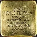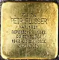 PETR FLUSSER NAR. 1921 DEPORTOVÁN 1942 DO TEREZÍNA 1942 DO ZAMOŠČE ZAVRAŽDĚN |
