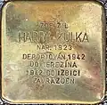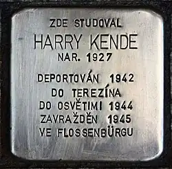 HARRY KENDE NAR. 1927 DEPORTOVÁN 1942 DO TEREZÍNA DO OSVĚTIMI ZAVRAŽDĚN 1945 VE FLOSSENBÜRGU |