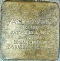 KAREL ARNSTEIN NAR. 1907 ZATČEN 29.5.1942 DEPORTOVÁN DO MAUTHAUSENU ZAVRAŽDĚN 12.8.1942 |