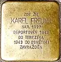 KAREL FREUND NAR. 1927 DEPORTOVÁN 1942 DO TEREZÍNA 1943 DO OSVĚTIMI ZAVRAŽDĚN |