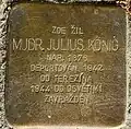 MUDR. JULIUS KÖNIG NAR. 1876 DEPORTOVÁN 1942 DO TEREZÍNA 1944 DO OSVĚTIMI ZAVRAŽDĚN |