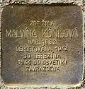 MALVÍNA KÖNIGOVÁ NAR. 1882 DEPORTOVÁNA 1942 DO TEREZÍNA 1944 DO OSVĚTIMI ZAVRAŽDĚNA |