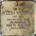 RŮŽENA WEBEROVÁ NAR. 1874 DEPORTOVÁNA 1942 DO TEREZÍNA 1942 DO TREBLINKY ZAVRAŽDĚNA |
