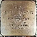 RUDOLF ULLMANN NAR. 1921 DEPORTOVÁN 1942 DO TEREZÍNA 1942 DO IZBICE ZAVRAŽDĚN |