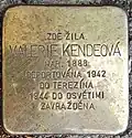 VALERIE KENDEOVÁ NAR. 1888 DEPORTOVÁNA 1942 DO TEREZÍNA 1944 DO OSVĚTIMI ZAVRAŽDĚNA |