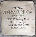ZDEŇKA FÜRTHOVÁ NAR. 1898 DEPORTOVÁNA 1942 DO TEREZÍNA 1944 DO OSVĚTIMI ZAVRAŽDĚNA |