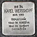 KAREL WEISSKOPF NAR. 1883 DEPORTOVÁN 1942 DO TEREZÍNA 1942 DO VARŠAVY ZAVRAŽDĚN |