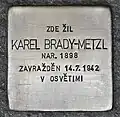 KAREL BRADY-METZL NAR. 1898 ZAVRAŽDĚN 14.7.1942 V OSVĚTIMI |