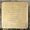 Ing. Arch. HEINRICH BLUM NAR. 16.1.1894 DEPORTOVÁN 4.4.1942 DO TEREZÍNA ZAVRAŽDĚN 1942 V IZBICI |
