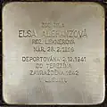 ELSA ALEFANZOVÁ ROZ. LEKNEROVÁ NAR. 28.2.1899 DEPORTOVÁNA 2.12.1941 DO TEREZÍNA ZAVRAŽDĚNA 1942 V LUBLINU |