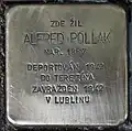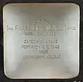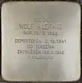 WOLF ALEFANZ NAR. 15.3.1893 DEPORTOVÁN 2.12.1941 DO TEREZÍNA ZAVRAŽDĚN 28.8.1942 V MAJDANKU |