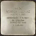 HEINRICH ALEFANZ NAR. 19.7,1927 DEPORTOVÁN 2.12.1941 DO TEREZÍNA ZAVRAŽDĚN 1942 V LUBLINU |