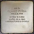RICHARD PEŘINA NAR. 2.4.1914 ZATČEN 19.5.1940 ZEMŘEL 26.9.1945 V OBERKAUFUNGU U KASSELU |
