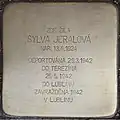 SYLVA JERALOVÁ NAR. 13.6.1924 DEPORTOVÁNA 29.3.1942 DO TEREZÍNA 25.5.1942 DO LUBLINU ZAVRAŽDĚNA 1942 V LUBLINU |