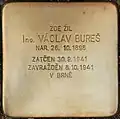 Ing. VÁCLAV BUREŠ NAR. 26.10.1898 ZATČEN 30.9.1941 ZAVRAŽDĚN 8.10.1941 V BRNĚ |
