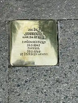 - ↑ V Brně přibyly tři kameny zmizelých pro židovské oběti - Seznam Zprávy. www.seznamzpravy.cz [online]. 2020-06-14 [cit. 2024-09-07]. Dostupné online.