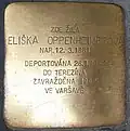 ELIŠKA OPPENHEIMEROVÁ NAR. 12.3.1881 DEPORTOVÁNA 28.1.1942 DO TEREZÍNA ZAVRAŽDĚNA 1942 VE VARŠAVĚ |
