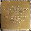 KAMILA BARDACHOVÁ ROZ. GRÜNWALDOVÁ NAR. 5.11.1880 DEPORTOVÁNA 26.11.1941 DO MINSKA ZAVRAŽDĚNA 1941 V MINSKU |