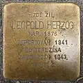 LEOPOLD HERZOG NAR. 1876 DEPORTOVÁN 1941 DO TEREZÍNA ZAVRAŽDĚN 1943 TAMTÉŽ |
