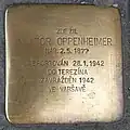 VIKTOR OPPENHEIMER NAR. 2.5.1877 DEPORTOVÁN 28.1.1942 DO TEREZÍNA ZAVRAŽDĚN 1943 TAMTÉŽ |