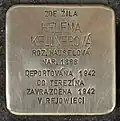IRMA BURIANOVÁROZ. STEINOVÁ NAR. 1.5.1890 DEPORTOVÁNA 4.4.1942 DO TEREZÍNA ZAVRAŽDĚNA 1942 V REJOWIECI |