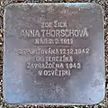 Kostelní čp. 8 | 18. května 2023[10] | Anna Kornfeldová se narodila 24. listopadu 1897. Byla manželkou obchodníka Bedřicha Kornfelda, s nímž měla jedinou dceru Hanu. Byla zavražděna v Osvětimi.[6] | |