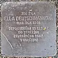 Poláčkovo náměstí 86/87 | 27. dubna 2022[35] | Ella Deutschmannová roz. Sladkusová se narodila 20. června 1908 v Chlumci nad Cidlinou. Jejími rodiči byli Emil a Irma Sladkusovi.[36] |