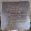 Ulrichovo náměstí čp. 762 | 2. října 2024[14] | Věra Herman provdaná Goodkin se narodila v červnu roku 1930 v Hradci Králové do rodiny Emila a Margit Hermanových. Po okupaci Československa odešla s rodiči do Užhorodu k příbuzným. Prchala před nacistickými represemi až do roku 1944. Poté byla s matkou Margit umístěna do internačního tábora v Kistarcse. Brzy odtud putovala do dětského domova, který v Maďarsku provozoval švédský Červený kříž. Věra během pobytu v dětském domově onemocněla spálou a musela být hospitalizována v nemocnici. Během jejího pobytu s nemocnici byl dětský domov napaden maďarskými fašisty a všechny děti byly zavraždeny. Jelikož se po uzdravení neměla již kam vrátit, putovala do místního sirotčince, který byl také pod správou švédského Červeného kříže. Díky pomoci švédského diplomata Raoula Wallenberga se setkala ještě před koncem války s rodiči v Budapešti, kde se dočkali osvobození. V roce 1947 odešla s rodiči do USA. Věra Goodkin zemřela 2. října 2023, přesně rok před položením kamenů zmizelých v Hradci Králové. [17] |