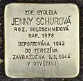 JENNY FLEISCHEROVÁ NAR. 8. 6. 1874 DEPORTOVÁNA 18. 12. 1942 DO TEREZÍNA ZEMŘELA 1945 NA NÁSLEDKY ÚTRAP |