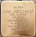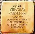 VÍTĚZSLAV ZAITSCHEK NAR. 1889 DEPORTOVÁN 1942 DO TEREZÍNA 1942 DO TRAWNIK ZAVRAŽDĚN |