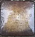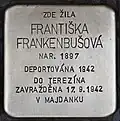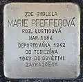 MARIE PFEFFEROVÁ ROZ. LUSTIGOVÁ NAR. 1884 DEPORTOVÁNA 1942 DO TEREZÍNA 1943 DO OSVĚTIMI ZAVRAŽDĚNA |