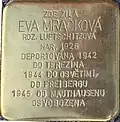 EVA MRÁČKOVÁ ROZ. LÜFTSCHITZOVÁ NAR. 1926 DEPORTOVÁNA 1942 DO TEREZÍNA 1944 DO OSVĚTIMI, DO FREIBERGU 1945 DO MAUTHAUSENU OSVOBOZENA |