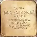 HANA ZAITSCHKOVÁ NAR. 1915 DEPORTOVÁNA 1942 DO TEREZÍNA 1942 DO TRAWNIK ZAVRAŽDĚNA |